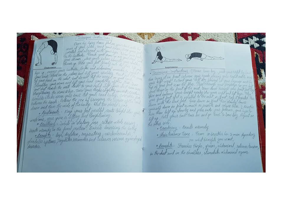 Shortly after enrolling in my master's degree, I received this card from an acquaintance who is currently a yoga instructor. I was asked to turn it into the digital version, so that it could be distributed to his students and be as readable as possible, with illustrations similar to the present ones, but more clearly outlined (regarding them, I don't know their author, I was told that they are received from his master, from India, to complete his yoga class). Everything that is seen is written by his hand, while his teacher dictates it.I want to resume this topic, without consulting him, delivering the best option I can find.At the moment I have some of the illustrations ready, but I am going to choose what type of approach to use.